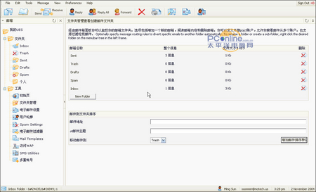 通过这个功能我们可以先创建一个新的文件夹,然后将符合的邮件地址或邮件主题的邮件使用“移动”将它们送到相应的文件夹里去,只是这样实在不如GMAIL里的规则设定自动归类来的便捷。