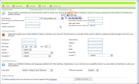 Email Name一栏填写你喜欢的用户名,@符号之后的是可供选择的域名,点一下下拉菜单,还是有不少的选择的,不过多数是.us后缀的,不怎么讨人喜欢:
