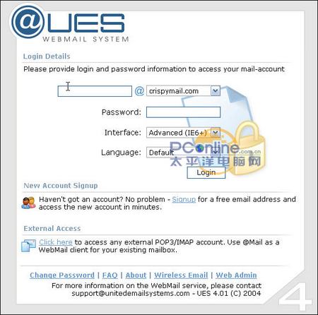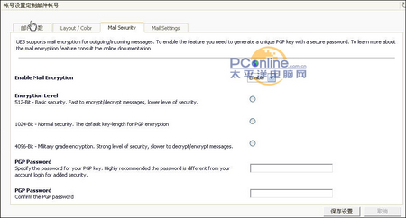 UES的邮箱一个特色是对于安全性的设置。