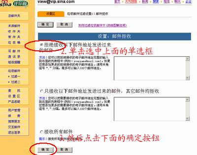 地址的来信,这样,除了您设置的这几个地址外,其余的邮件