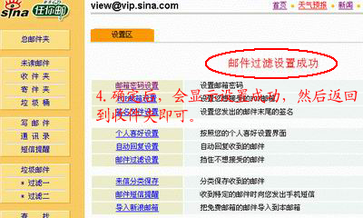 3.点击确定后,页面将会显示如下的成功信息,说明邮件过滤