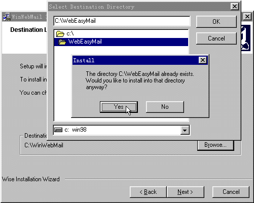 4. 安装新的 WinWebMail 到原 WebEasyMail 目录。![]() |