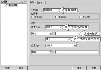 过滤器由两部分组成,即条件选项和动作选项,分别用来设置过滤器的作用条件和要执行的操作。