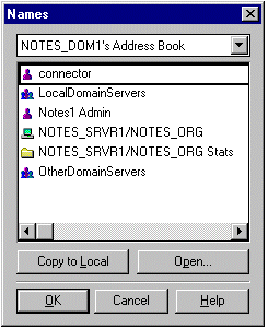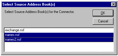按住 CTRL 键不放,单击 names.nsf 和 names2.nsf,然后单击 OK。