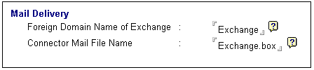 当您返回到“Notes Server Configuration Information”部分时,输入 Foreign Domain Name of Exchange 和 Connector Mail File Name。我们建议使用各自的默认值,Exchange 和 Exchange.box。