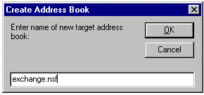 在 Source Name & Address Book(s) 部分中,单击 Browse,然后单击 Yes ,创建一个新的目标。键入您为 Lotus Notes 外部域选择的名称:在本方案中为 Exchange.nsf。单击 OK。