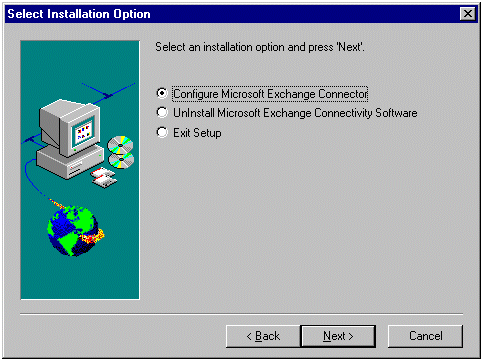 当出现以下对话框时,确认选中了 Configure Microsoft Exchange Connector,然后单击 Next。