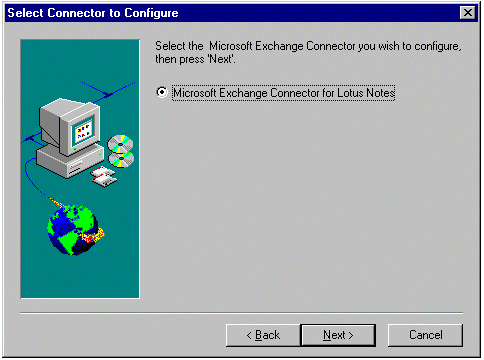 当出现以下对话框时,确认选中了 < b>Microsoft Exchange Connector for Lotus Notes ,然后单击 Next。