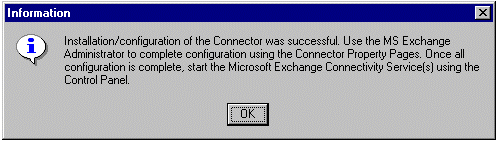 Microsoft Exchange Connectivity Setup 已完成。单击 OK。