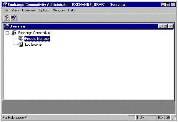将会出现如下 Process Manager 窗口。注意到所有的六个进程均有绿色指示灯,这表示启动成功。退出 Exchange Connectivity Administrator。