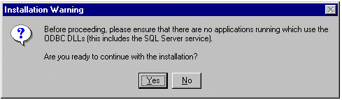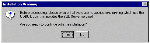 当出现以下对话框时,确认没有运行任何使用了 ODBC DLL 的应用程序,然后单击 Yes。