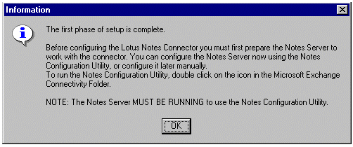 单击配置文档顶部的 Configure 按钮。配置实用工具现在将自动配置您的 Lotus Notes 服务器。当出现以下对话框时,单击 OK 以完成配置。