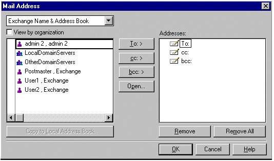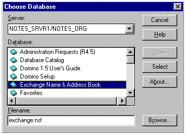 现在,Lotus Notes 客户就可以使用 Exchange Server 全局地址列表了(用作 Exchange Name and Address Book)。从备忘录中查看有效的地址;并可从 Exchange Name & Address Book 中选择收件人。