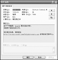 | 3.调试端口信息 这里会显示应该如何设置内核调试器的信息,包括内存转储映像是否已写入磁盘、使用什么端口来完成这次调试。 其实,根据笔者的经验,蓝色警报中除了出错代码比较有用外,对普通用户来说,其余的大部分信息并无多少实际意义,仅供参考而已。 为调试系统的需要,Windows在系统出现BSOP错误后,KeBugCheck会自动生成一个名为Memory.dmp的侦错文件,该文件位于C:\Windows\Minidump\文件夹下,默认设置下,该文件的大小与系统物理内存容量一致,我们可以将该文件压缩后发送给微软的技术支持部门,以获取相应的解决方案,但该文件的容量是如此巨大,如何发送是一个大问题,因此很少有用户真正这样做。 提示:打开“系统属性→高级→启动和故障恢复”窗口,如图2所示,在这里可以看到“写入调试信息”的生成方式:小内存转储、核心内存转储、完全内存转储、无,基于上面的分析的原因,建议在这里选择“无”。 ![]() 三、处理蓝色警报三部曲 虽然Windows 2000/XP的蓝色警报窗口显示的信息可能各有不同,或者是硬件原因,或者是驱动程序与系统兼容性方面的问题,或者索性是应用程序的某些Bug。首先当然是排除病毒的原因,然后我们可以按照如下步骤进行处理: 第1步:重启系统 出现蓝色警报窗口时,我们首先应该考虑的是重新启动系统,大部分情况下重启系统后即可解决问题。不过,一般此时已无法通过“Ctrl+Alt+Del”热启动,而只能按下复位按钮冷启动,或者索性断电后重新开机。 ![]() 进入系统时,从“控制面板→管理工具→事件查看器”,或者在“开始→运行”框中键入“eventvwr.msc”命令进入事件查看器界面,如图3所示,在这里根据日期和时间重点检查“系统”和“应用程序”中的类型标志为“错误”的事件,例如图4报告某个服务启动失败的错误。 ![]()