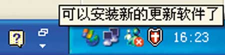 SUS部署完成后,客户端就可以实时地从SUS服务器中下载并安装最新的补丁程序了。但前提是需要预先修改客户端注册表。为此Microsoft特别为用户提供了一个专门的管理模板,下载地址为http://download.microsoft.com/download/2/d/c/2dc07364-2fcb-4b82-adc7-2553915997b3/wuau.adm,通过它您可以设定客户端怎样完成补丁程序的下载和安装、SUS服务器的名称以及客户端完成补丁安装后是否重启计算机等。这样,不同的Windows系统就可以直接从SUS服务器中获得所需的安全更新信息了。用户登录到系统后,如果有未安装的安全更新,在其屏幕右下方的系统托盘区中自动显示更新提示(如图2所示)。另外,客户端的Windows Update.log文件中也会保存系统的更新日志。