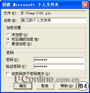 启动Outlook,Outlook弹出“选择配置文件”对话框,我们选择刚才添加的“张三的配置”,点击“确定”。Outlook启动后,在菜单栏选择“工具→电子邮件账户”,在弹出的对话框上选择“查看或更改现有电子邮件帐户”,点击“下一步”,如图3所示,点击“新建Outlook数据文件”,选择一个保存Outlook个人文件夹文件的位置和文件名后,点击“确定”。在接下来的对话框中,我们把“张三”同学的个人文件夹命名为“张三的个人文件夹”。因为有多个人共同使用Outlook程序,所以我们还的给“张三的个人文件夹”文件设置一个密码,以确保“张三”同学个人信息的安全,设置完成后,点击“确定”(如图4)。新建了数据文件以后,我们还要在图3中的“将新电子邮件投递到下列位置”下拉列表框中选择刚才新建的数据文件即“张三的个人文件夹”,这样,Outlook就会把接收和发送的电子邮件及其它项目投递到该文件夹下的相关文件夹中。上述设置完成螅慊鳌巴瓿伞保琌utlook提示新的设置只有在下次启动Outlook时才会生效,点击“确定”关闭该对话框并关闭Outlook。
