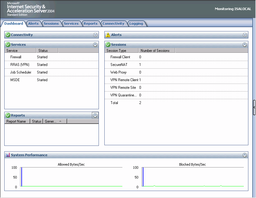 1. 在 Microsoft Internet Security and Acceleration Server 2004 管理控制台,展开服务器,点击 Monitoring 。