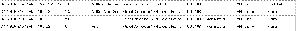 4. 你也可以使用实时记录特性来监视VPN客户的连接,点击Logging 标签,然后点击任务面板的 Tasks 标签,点击 Start Query 链接,这儿你可以看到通过防火墙的所有通信。你也可以使用过滤来观察指定的VPN客户或VPN客户网络。