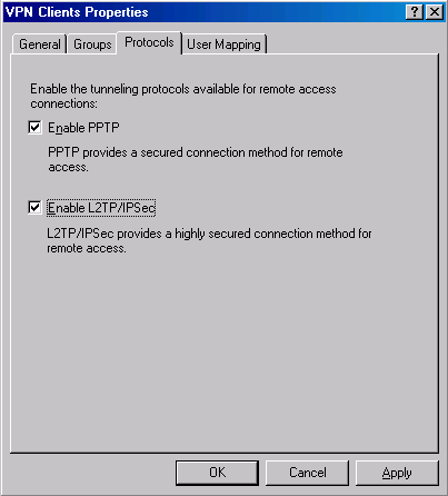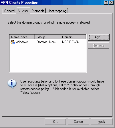 17. 在 Virtual Private Networks (VPN) Properties 对话框上点击Apply ,然后点击 OK。