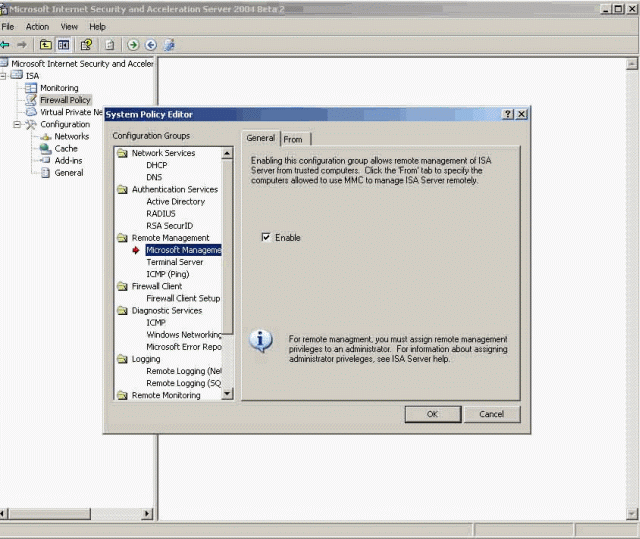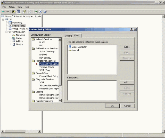 如果你像我一样轻视在8个或者更多的终端服务会话中切换,甚至使用双头显示器,那么你或许明白我对在XP或者其他桌面机器上进行远程管理的喜欢。如果你从来没有在ISA Server 2004中尝试过,下面就是介绍。