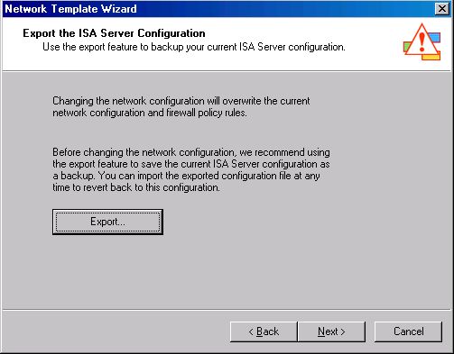 在你正确的配置网络接口后,可以使用这个模板(请注意:一定要正确的配置网络接口)。至于如何配置网络接口,请参阅ISA Server 2004快速配置指南。