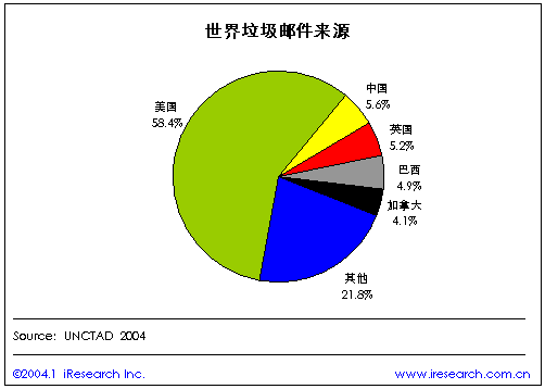 联合国贸易与发展会议(UNCTAD)最近发表的2003年电子商务与发展报告指出,美国是全球最大的垃圾邮件制造者,全球用户收到的垃圾邮件有一半多源自美国。UNCTAD的研究报告详细的考察了近半年的病毒攻击事件,结果发现,美国在2002年也遭受了最大的数字攻击,同时它也是当年最大的垃圾邮件生产国。
