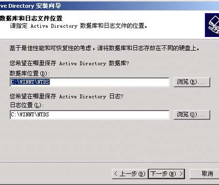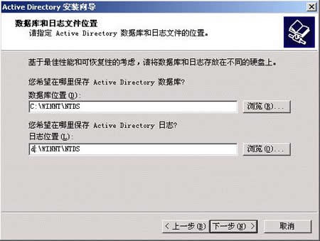 为了性能和可恢复性的考虑,我们可以将数据库和日志分别保存在不同的硬盘分区上。修改盘符并点击“下一步”,将显示: