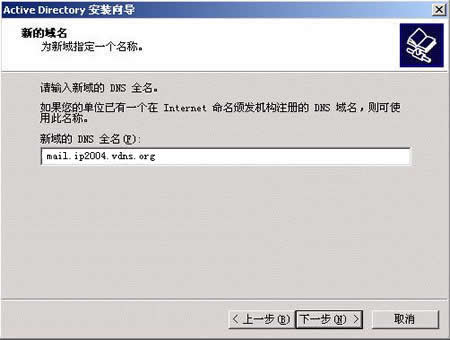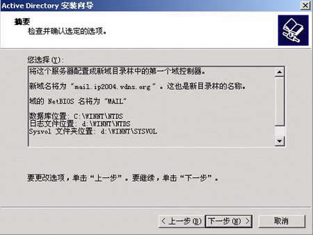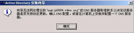 指定文件夹到某个NTFS格式的硬盘分区上,并点击“下一步”,如果向导无法与处理名称“mail.ip2004.vdns.org”的DNS服务器取得联系,则将显示下面的消息:
