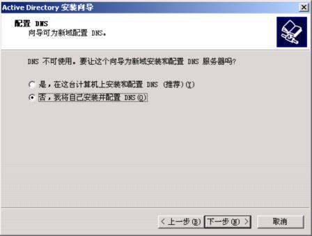 选中“否,我将自己安装配置DNS(O)”,并点击“下一步”,将显示: