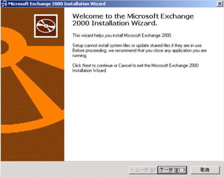 安装过程将首先显示Exchange 2000 Server安装向导(Install Wizard)的欢迎页面。