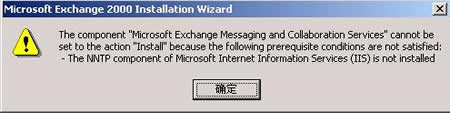 注意:如果不能选择Typical安装,则可能是登录系统时没有以Administrtor登录到您设置的域。或者是NNTP组件没有安装(警告如下图所示:)