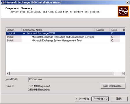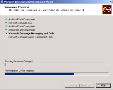 由于Exchange 2000 Server的安装过程很长(往往需要1~2个小时左右,视服务器配置而定),为了防止安装过程中因意外事故(比如停电)的发生而造成前功尽弃,请事先做好相关防范工作。 - 正式安装