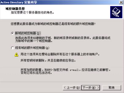 e.用Administrator登录到系统中,在安装的整个过程中一定要用该用户登录到Win2000系统中。 - 升级成域控制器