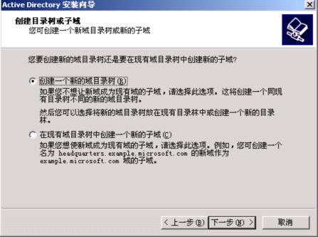 选中“创建新的域目录树(R)”并点击“下一步”: