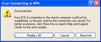 也许你对这些设置还有疑问,但是事实上,如果你在没有加入域的ISA Server上使用用户映射,并且配置VPN服务使用RADIUS认证,那么没有谁可以连接到ISA Server。你会看见如下的对话框,如果你执行网络监控,你会发现VPN客户向ISA Server发送了一个断开连接的信息。