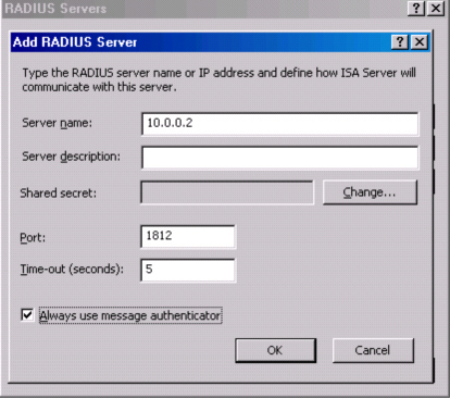 Server(这个信息是转送到RADIUS服务器,不是给ISA Server)。