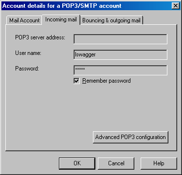 输入与邮件服务器进行连接所需的信息。如果需要改变POP TCP/IP端口号,可以通过单击高级POP3配置并进行必要的改变来实现。