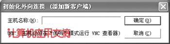 要进行逆向连接,主控端先要运行Winvnc组件中的“VNC 查看器侦听模式”,进行远程控制时,被控端在状态栏的VNC小图标上点击右键,在弹出的菜单中选择“添加新的客户端”,会打开一个“初始化外向连接”的窗口(如图11),在“主机名称”这栏中输入主控端的IP(必须是公网IP),连接成功后会发现被控端的桌面墙纸被去掉,状态栏中的VNC的小图标会变成黑色,这时主控端就可以对被控端进行远程控制了,被控端在状态栏的VNC小图标上点击右键,在弹出的菜单中选择“断开连接所有客户端”就可以断开连接,结束远程控制。