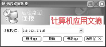 启动了远程桌面连接后,会出现一个窗口(如图3),这里我们要输入被控端的网关的公网IP(比如218.193.12.115,注意不是被控端的内网IP),连接成功后会出来个窗口,要输入用户名、密码,稍等片刻就可以进行远程控制了。