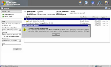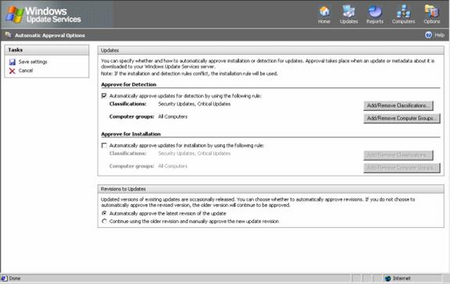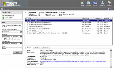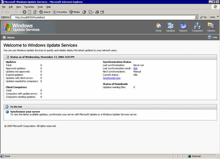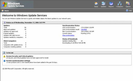 不管用哪种方法,一旦最初的安装和更新过程完成了之后,WUS将会提供一个方便的方式去管理微软软件的补丁程序。