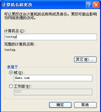 在这里把“隶属于”改成域,并输入:“demo.com”,并点确定,这是会出现如下画面: