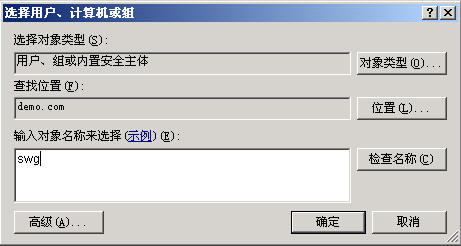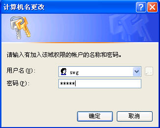 输入刚刚在域控上建的那个“swg”的帐号,点确定: