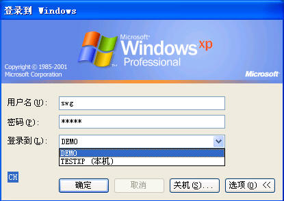 看到那个“登陆到”了吧,可以选择域登陆还是本机登陆了,在这里选择域“DEMO”,这样就可以用域用户进行登陆了。进入系统后,在“我的电脑”上击右键,选“属性”,点“计算机名”: