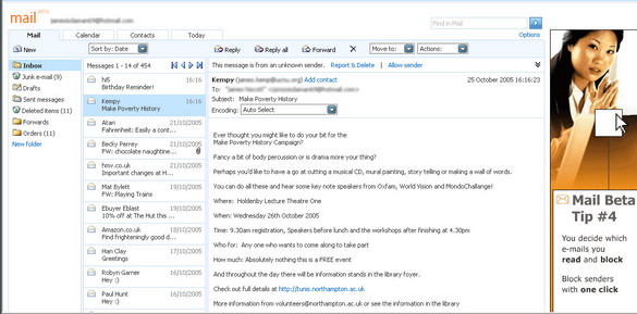 Kahuna(Mail Beta的代号)是一个完全适用最新Web技术的新一代MSN邮件系统,诸如AJAX——同CSS、XML及其他技术联合的HTML/DHTML网络应用程序架构。
