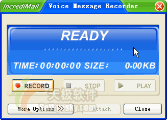 可以在信件中插入自己的声音,这是IncrediMail的又一大亮点,不过未注册的版本是不能实现这一功能的,您需要另行购买服务。您可以将录制的声音长期保存反复使用。点击“附加”按钮。语音即自动加入邮件。对方收到的邮件嵌入了一个播放器,定会让收件人兴奋不已!
