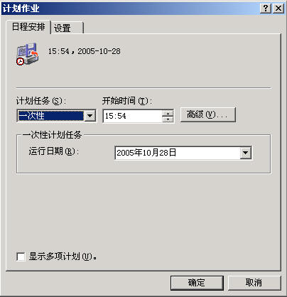 在这里要输入正确的具有管理员权限的帐号和密码才可以,输入后点“确定”,就会出现一个“计划的作业选项”:
