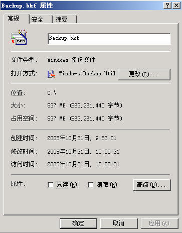 整个备份时间还是比较长的,大约要20分钟左右,当然具体还要根据你的系统中的数据量来决定性的,在我这个实验环境里10分钟不到就OK了。备份完成后,我们可以在备份目录下找到这个备份文件,其大小为:537M。
