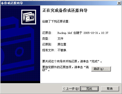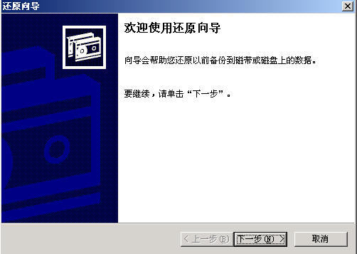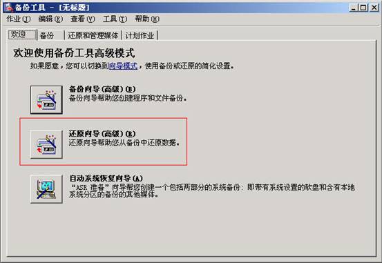 这回可别再选择备份向导了,要用“还原向导(高级)”: