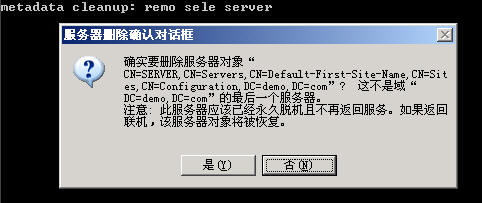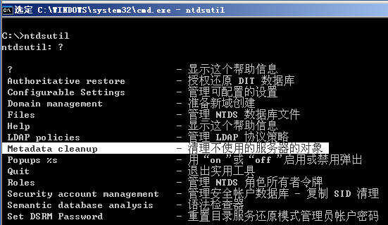 在这里我们要选择“Metadata cleanup ----清理不使用的服务器的对象”然后依次输入下面的命令: