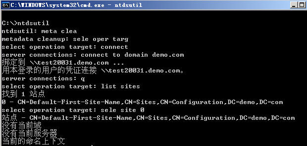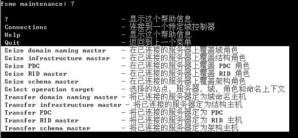 二、把FSMO角色强行夺取过来。这里又要用到“Ntdsutil”了: